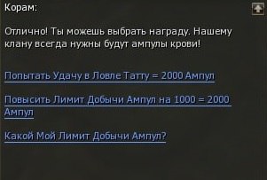 Внимание! Вы можете расширять лимит сдачи данного квеста у NPC Корама Зазеркалья за Reptiles High Blood.