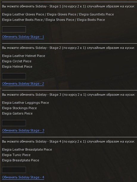 (5) Обращаемся у него в раздел "Обменять Sidelay - Stage" и выбираем нужную стадию и нужное количество предметов для обмена.