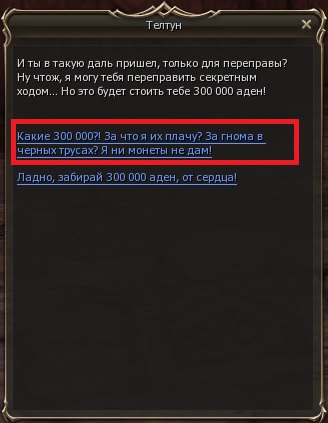 (Лучше всего телепортироваться в Gludio Airship из самого Gludio - тогда вы сэкономите 150 000 аден.
